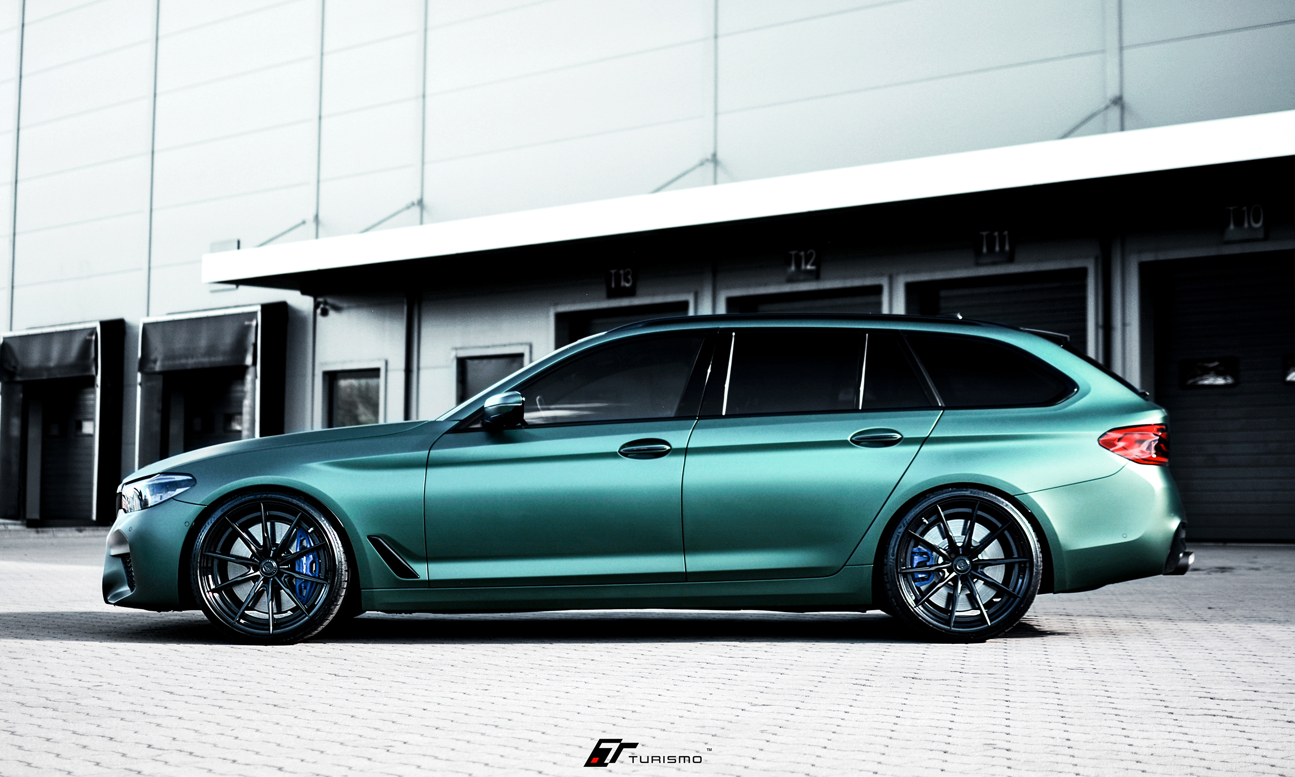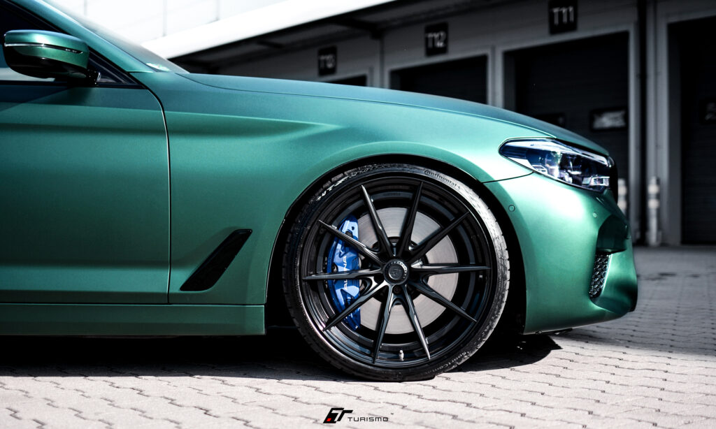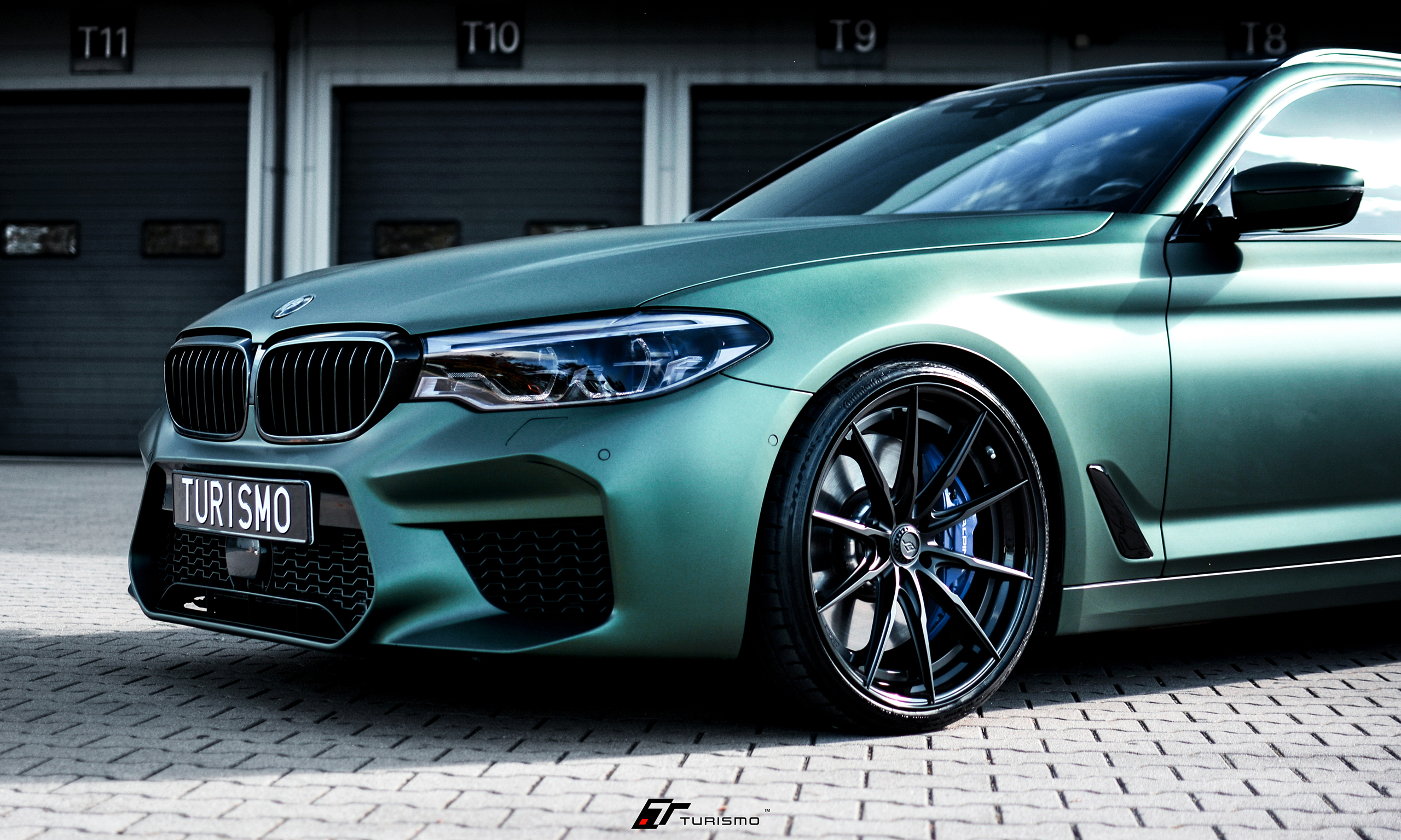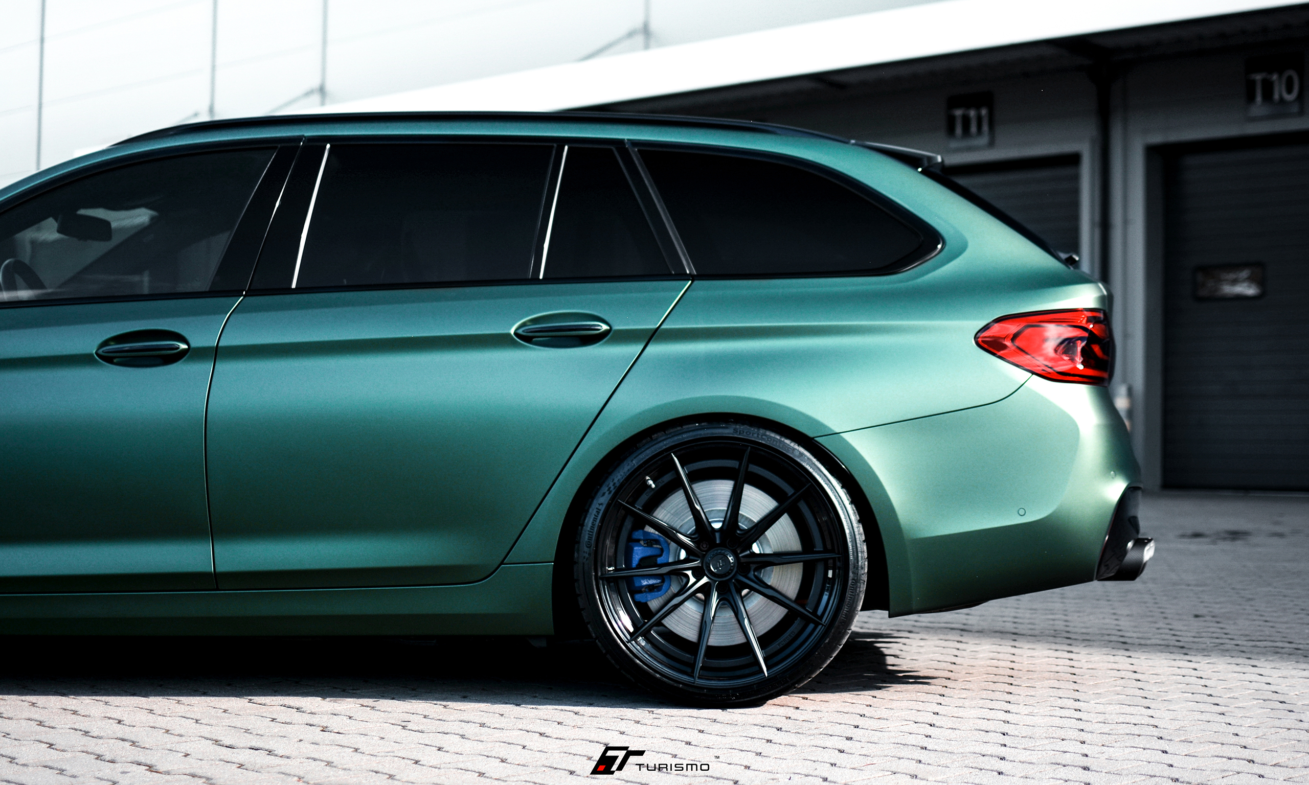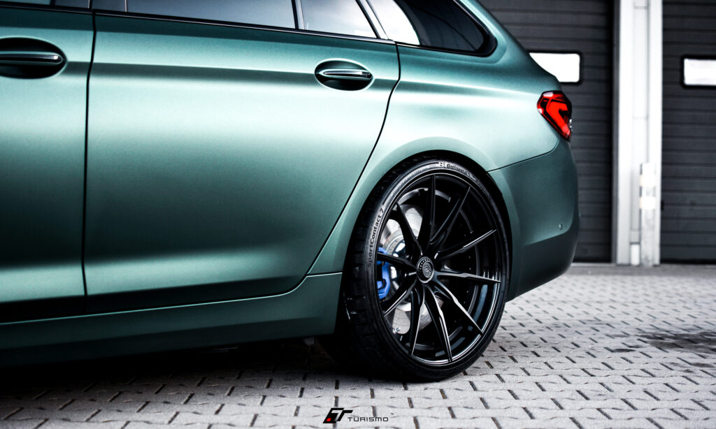 We present the Alpina B5, which we have equipped with a set of 21″ Turismo Forged C03 monoblocks in Satin Black, which goes perfectly with the body color – British Racing Green. 9″ wide wheels were installed on the front axle of the B5, while 10″ wide wheels were installed on the rear axle.
