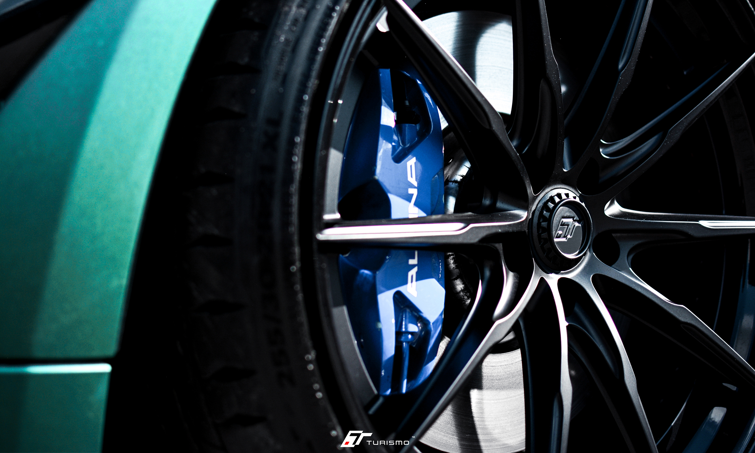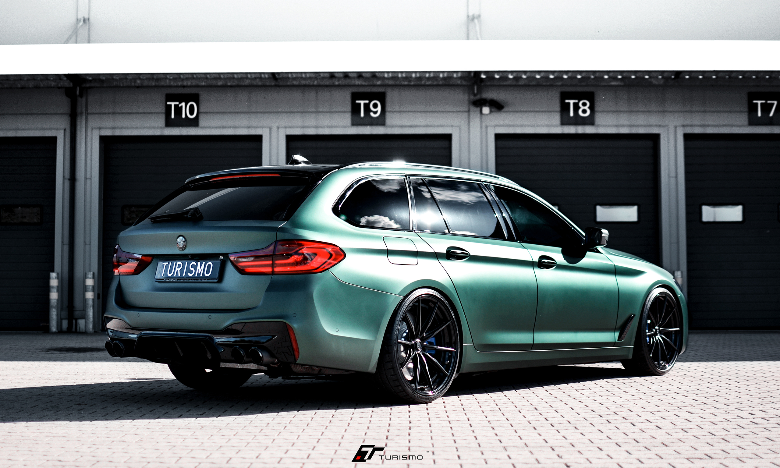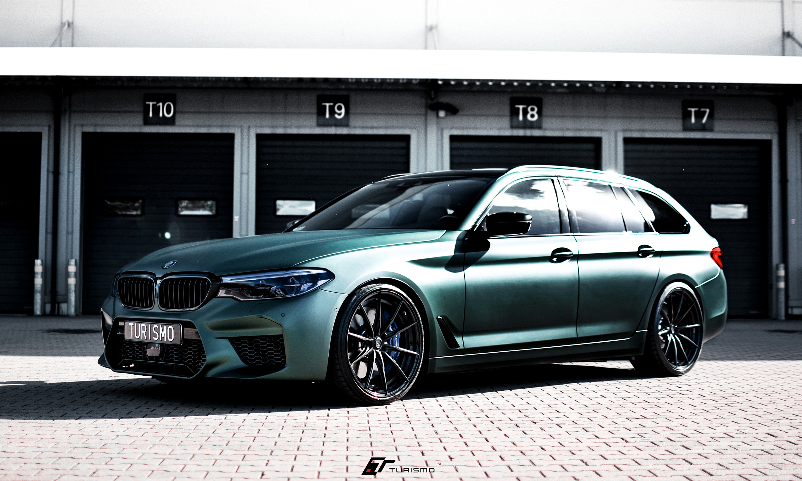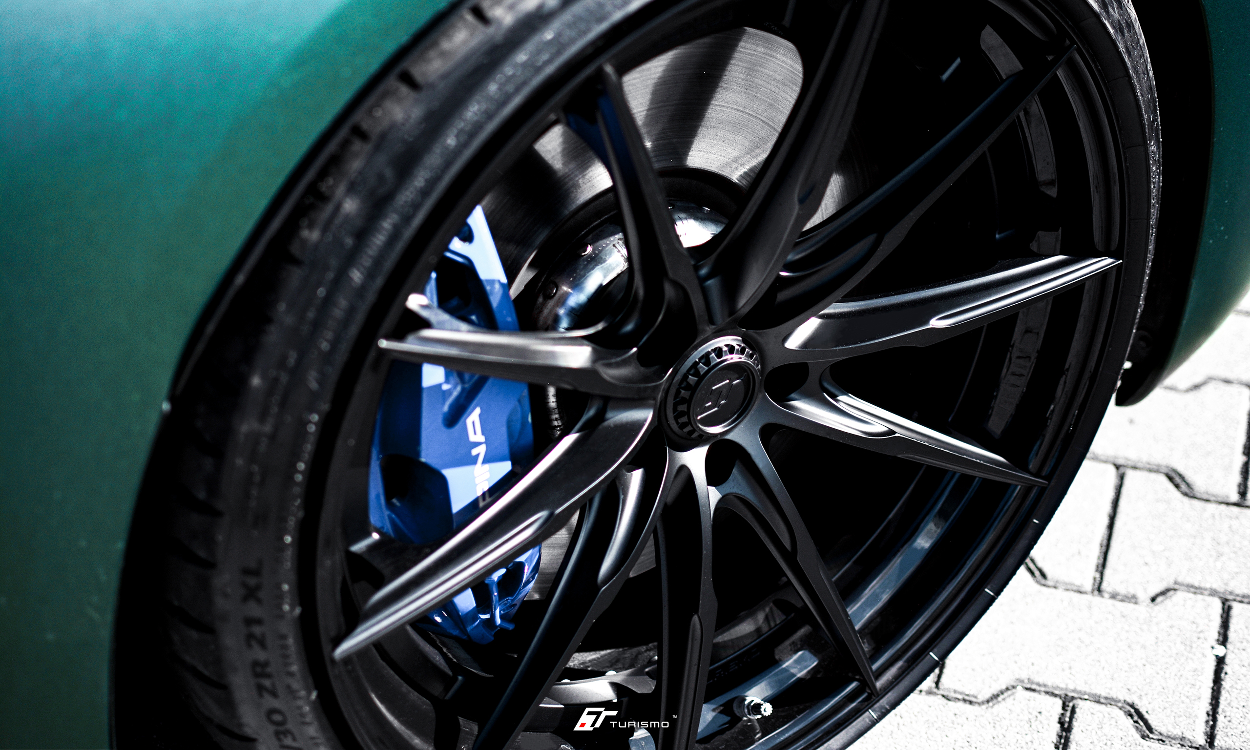 We present the Alpina B5, which we have equipped with a set of 21″ Turismo Forged C03 monoblocks in Satin Black, which goes perfectly with the body color – British Racing Green. 9″ wide wheels were installed on the front axle of the B5, while 10″ wide wheels were installed on the rear axle.
