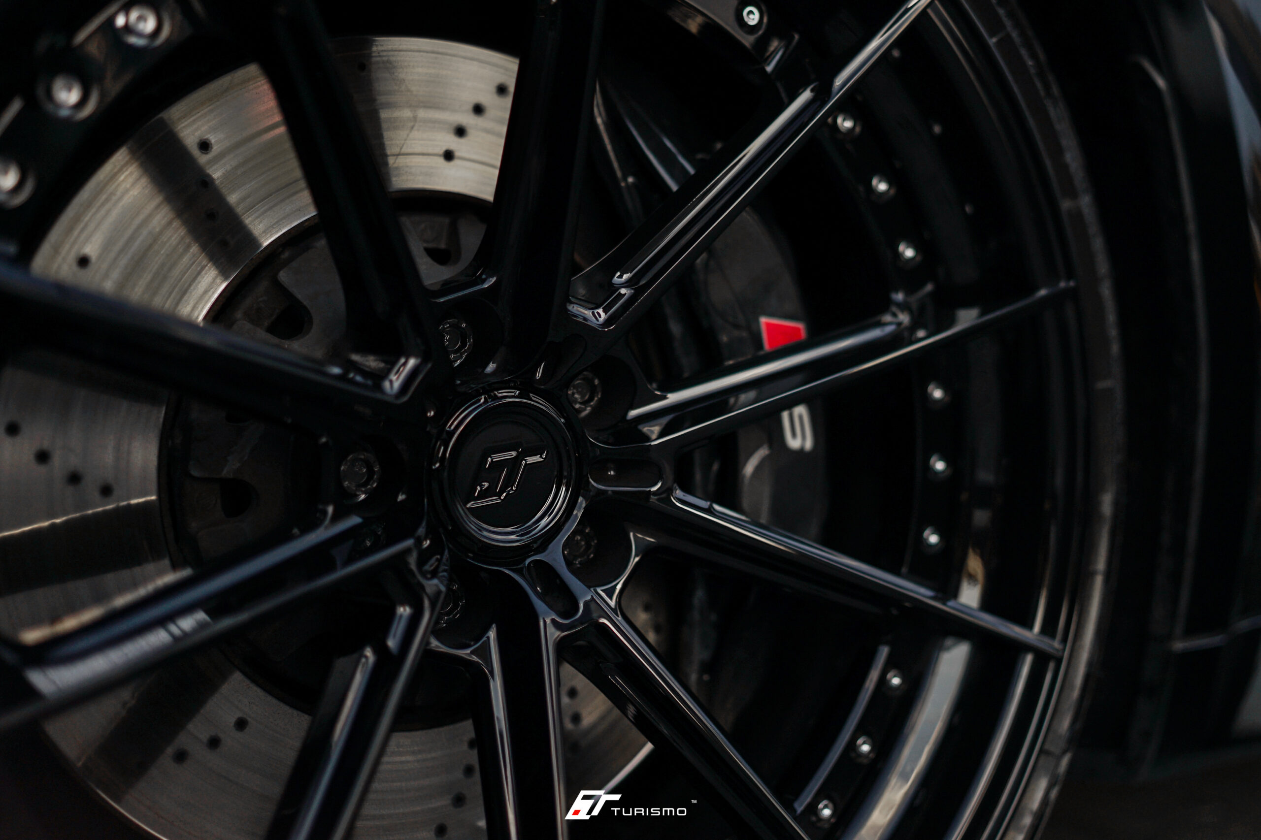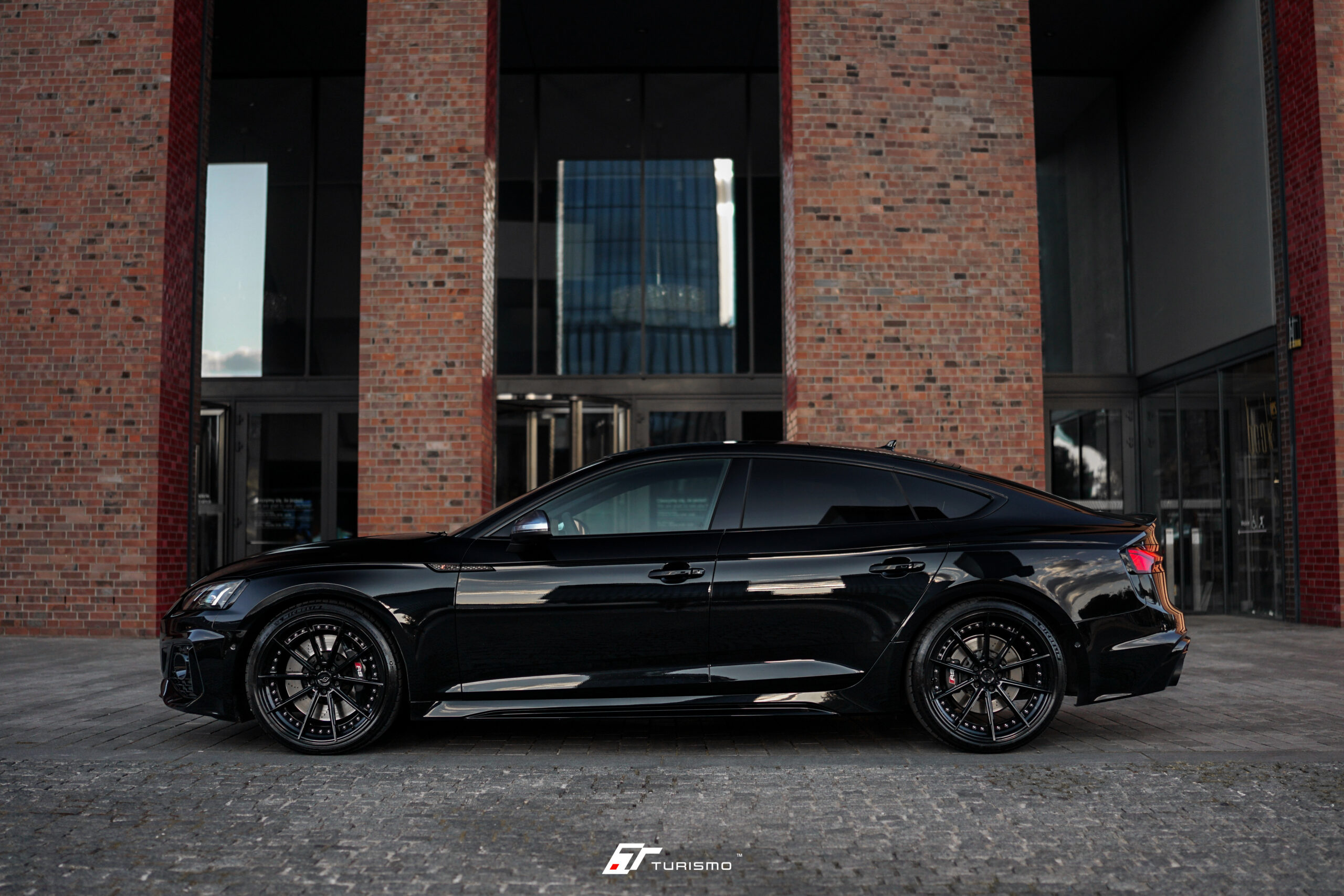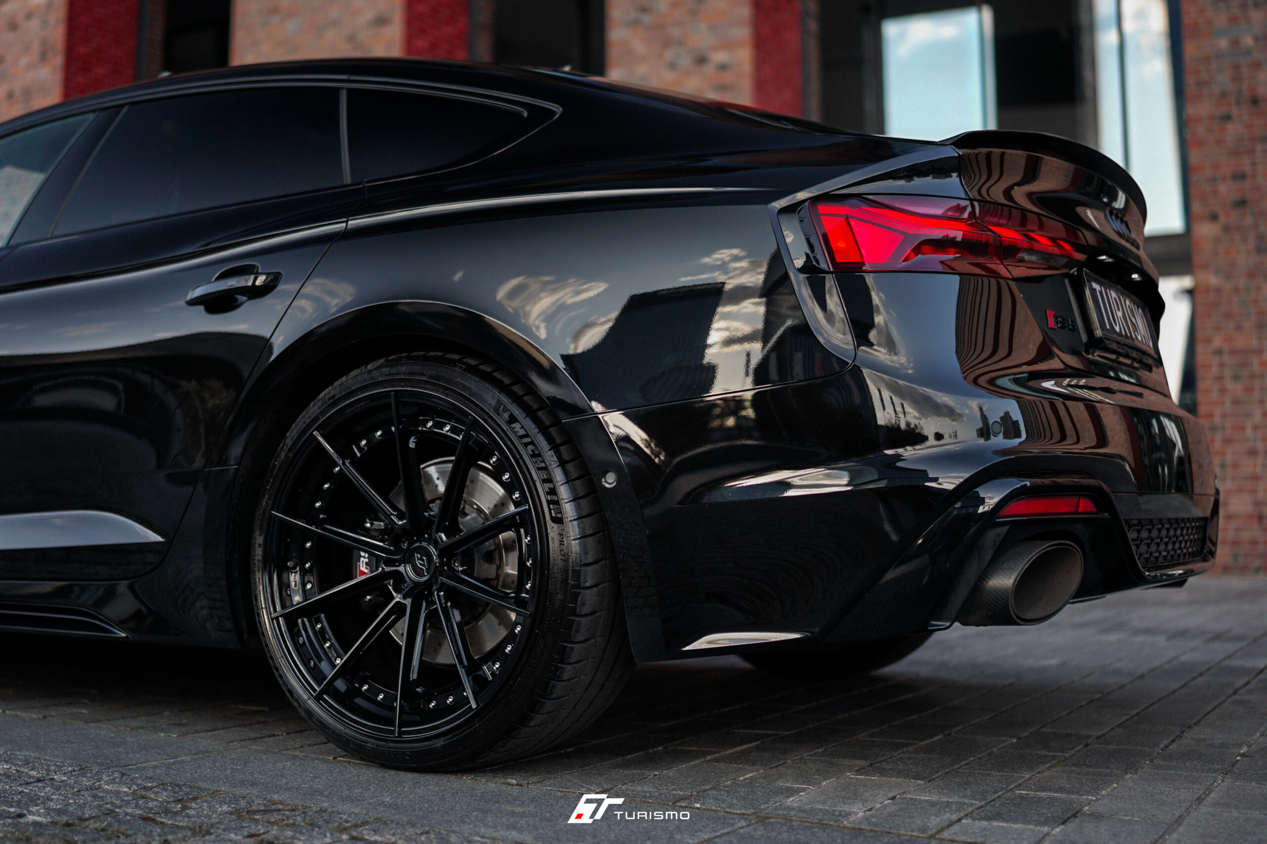 The Audi RS5 Sportback 8W (B9) is equipped with 20-inch, two-piece Turismo Forged D02 aluminum wheels. The wheels are finished in Gloss Black. The 10.5-inch wheels are mounted on the front and rear axles.