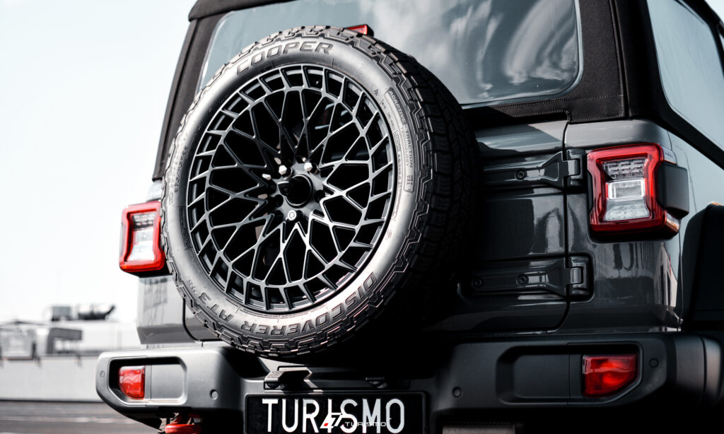 For a special order, we created Turismo HD01 (Heavy Duty) wheels for Jeep Wrangler Rubicon. Made of durable forged 6061 aluminum, the wheels are ready for off-road challenges and ensure reliability in all conditions.