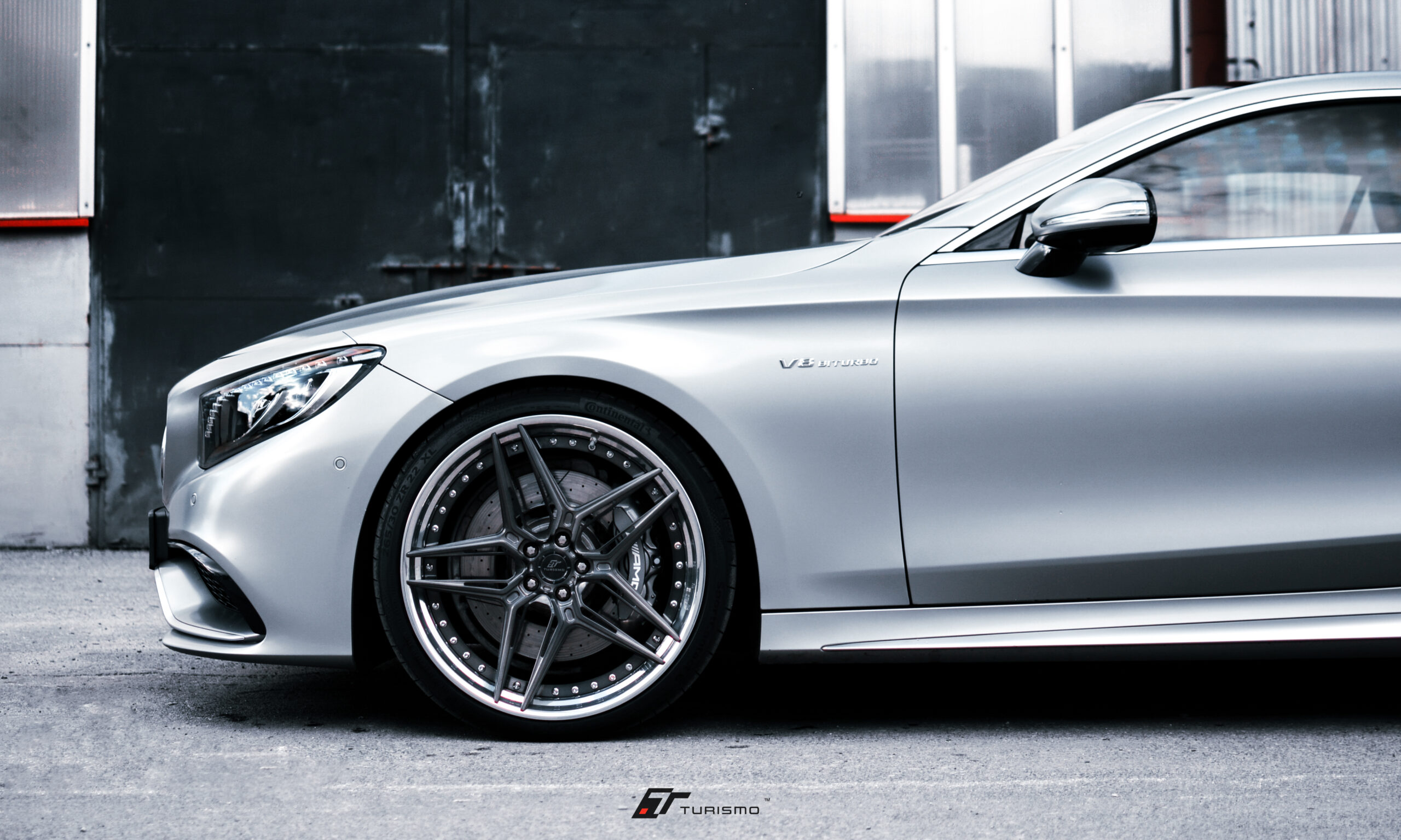 We’ve equipped this Mercedes-Benz S Coupe S63 AMG C217 with custom forged aluminum wheels from the Turismo Forged series. The front wheels are 22x9J, while the rear axle features 22×10.5J wheels. The wheels are finished in a brushed aluminum texture in Brushed Deep Black.