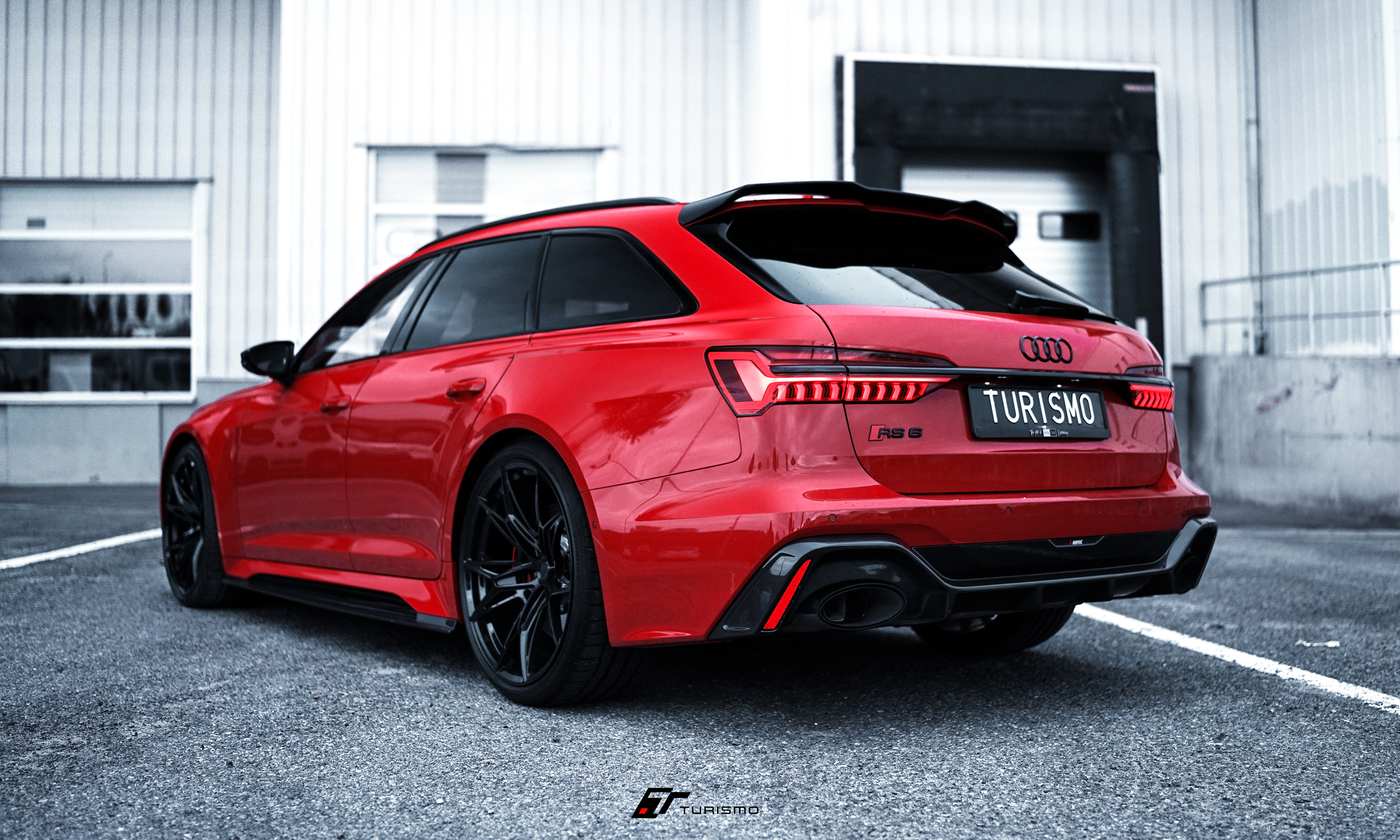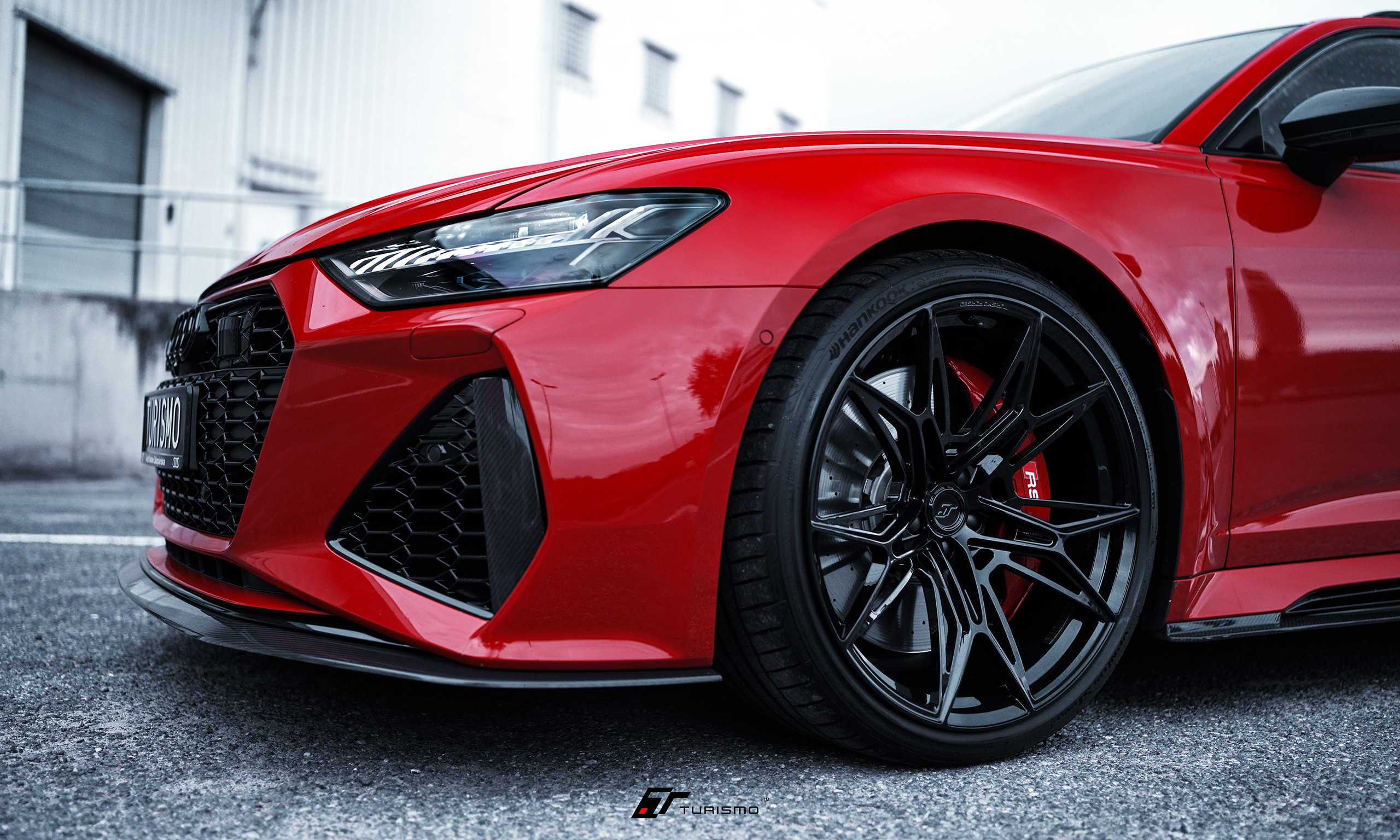 Audi RS6 C8 z racji swoich gabarytów jest jednym z tych samochodów, gdzie w kwestii średnicy felg można naprawdę wiele. Ten konkretny egzemplarz otrzymał od nas zestaw 23″ kutych felg typu monoblok. Wybór padł na jeden z naszych bestsellerowych modeli – Turismo Forged C01.
