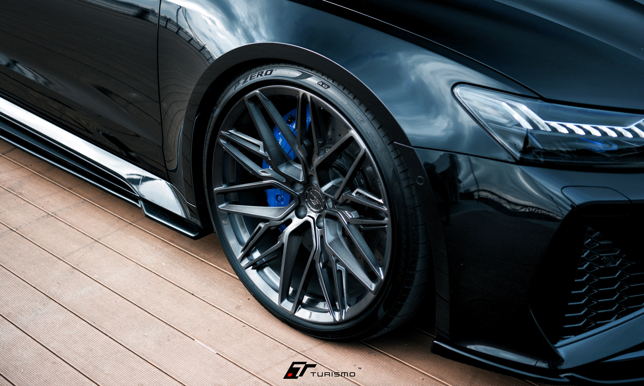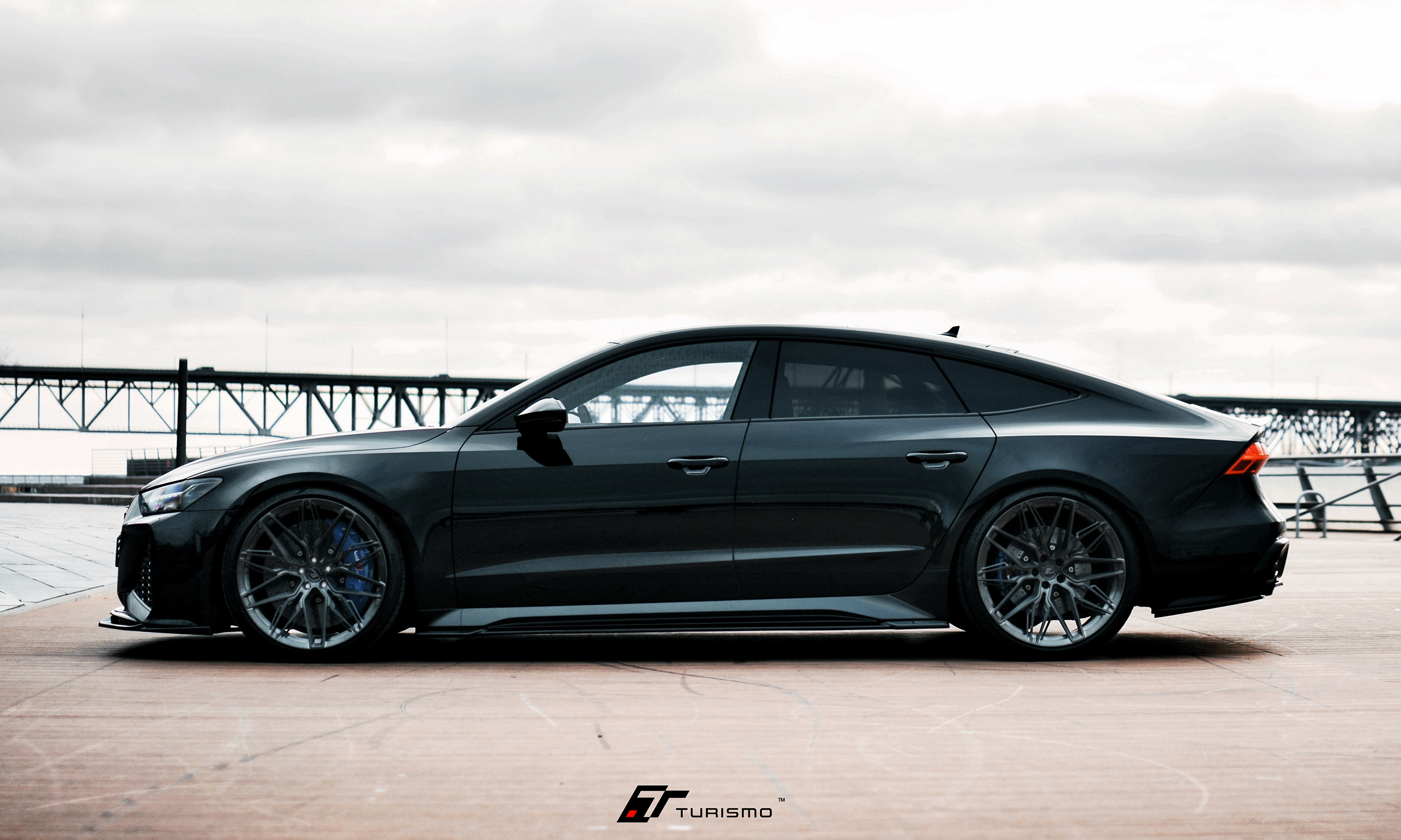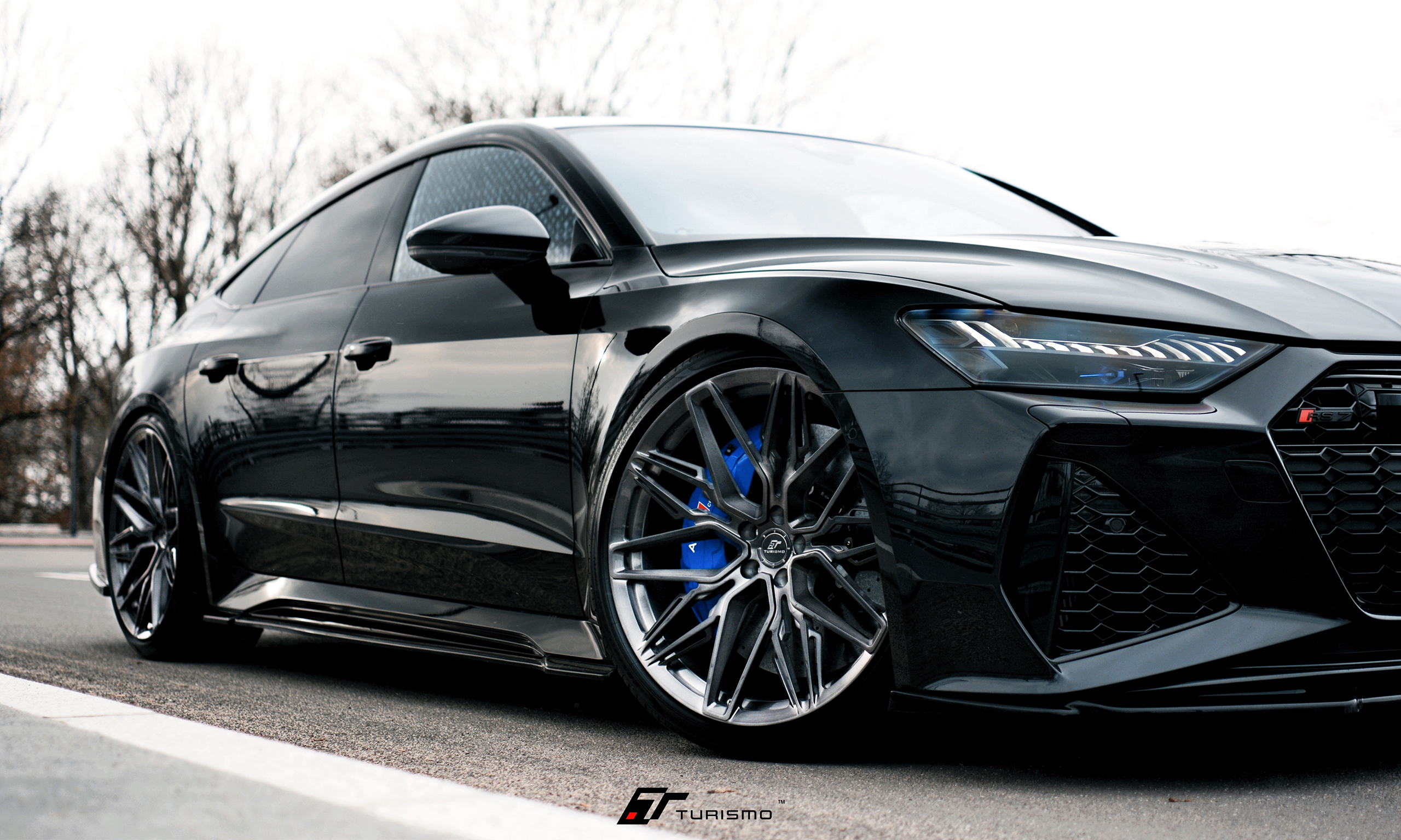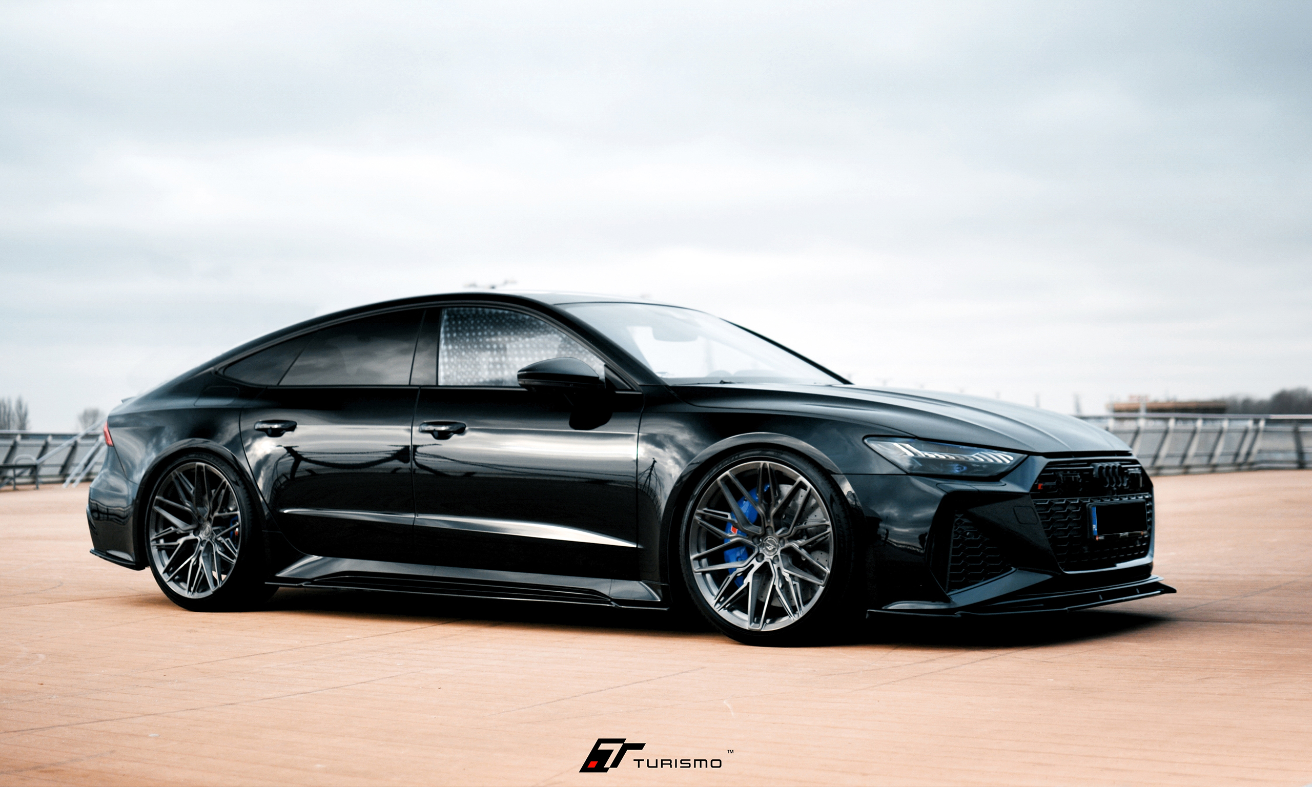 Prezentujemy Audi RS7 C8, do którego mieliśmy okazję wyprodukować jeden z ulubionych wzorów naszych Klientów – Turismo Forged SF01. Ręcznie szczotkowane wykończenie w kolorze głębokiej czerni (Brushed Deep Black) fenomenalnie komponuje się z klasycznym czarnym nadwoziem samochodu. Felgi zostały wyprodukowane w specyfikacji 22×10.5″, dzięki czemu idealnie wypełniliśmy nadkola pojazdu.