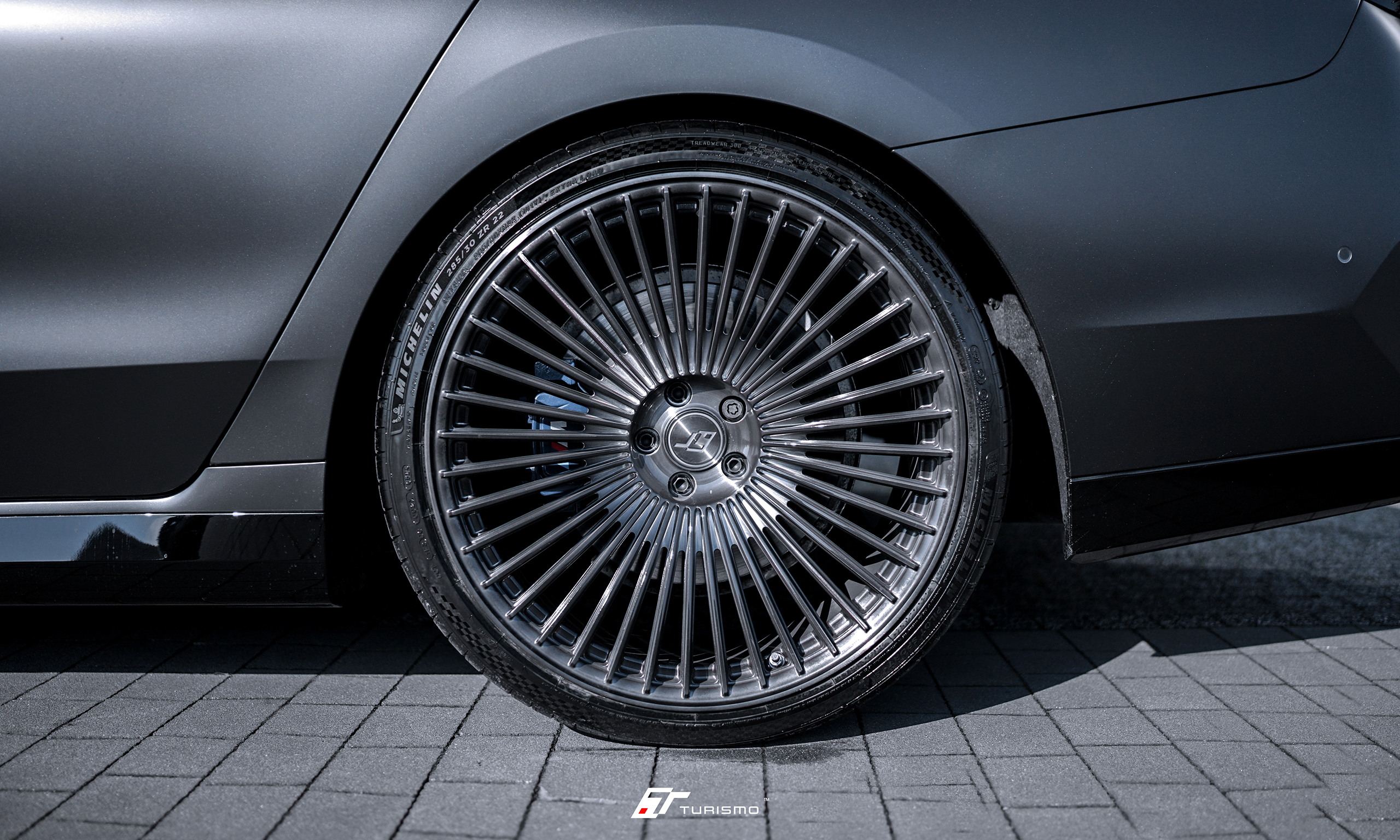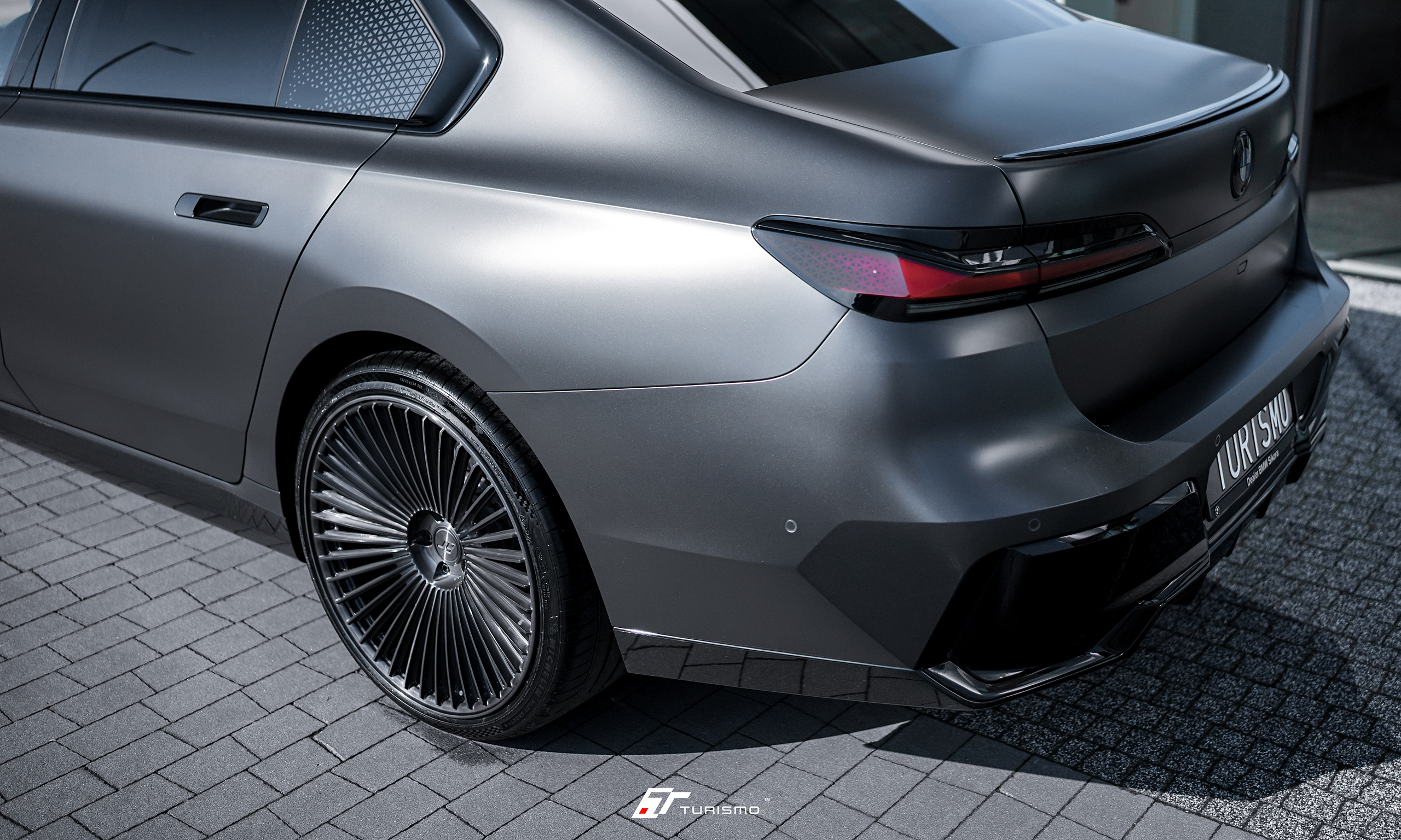Prezentujemy BMW Serii 7 G70, do którego wyprodukowaliśmy komplet felg Turismo C26, wykonanych z kutego aluminium. Jest to jeden z ulubionych wzorów naszych Klientów. W naszej ocenie potężne nadwozie „siódemki” bez wątpienia potrzebuje większych felg, niż 20-calowe obręcze, na których wyjeżdża z salonu. Jako producent kół na indywidualne zamówienie – mamy na to sposób!
