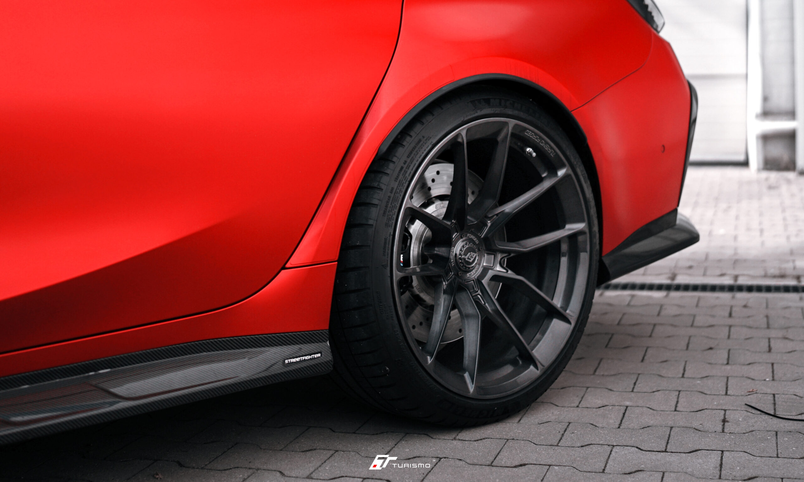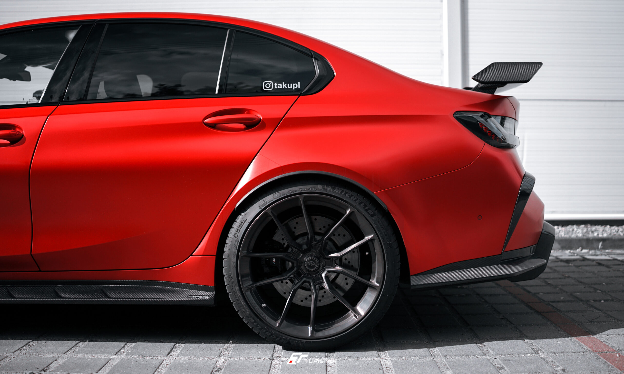 BMW M3 (G80) wyposażono w zestaw 20-calowych felg aluminiowych Turismo Forged F81, wykonanych z kutego aluminium 6061. Felgi zostały poddane ręcznej obróbce by uzyskać efekt „szczotkowanego aluminium” , a następnie polakierowane w kolor Deep Black.