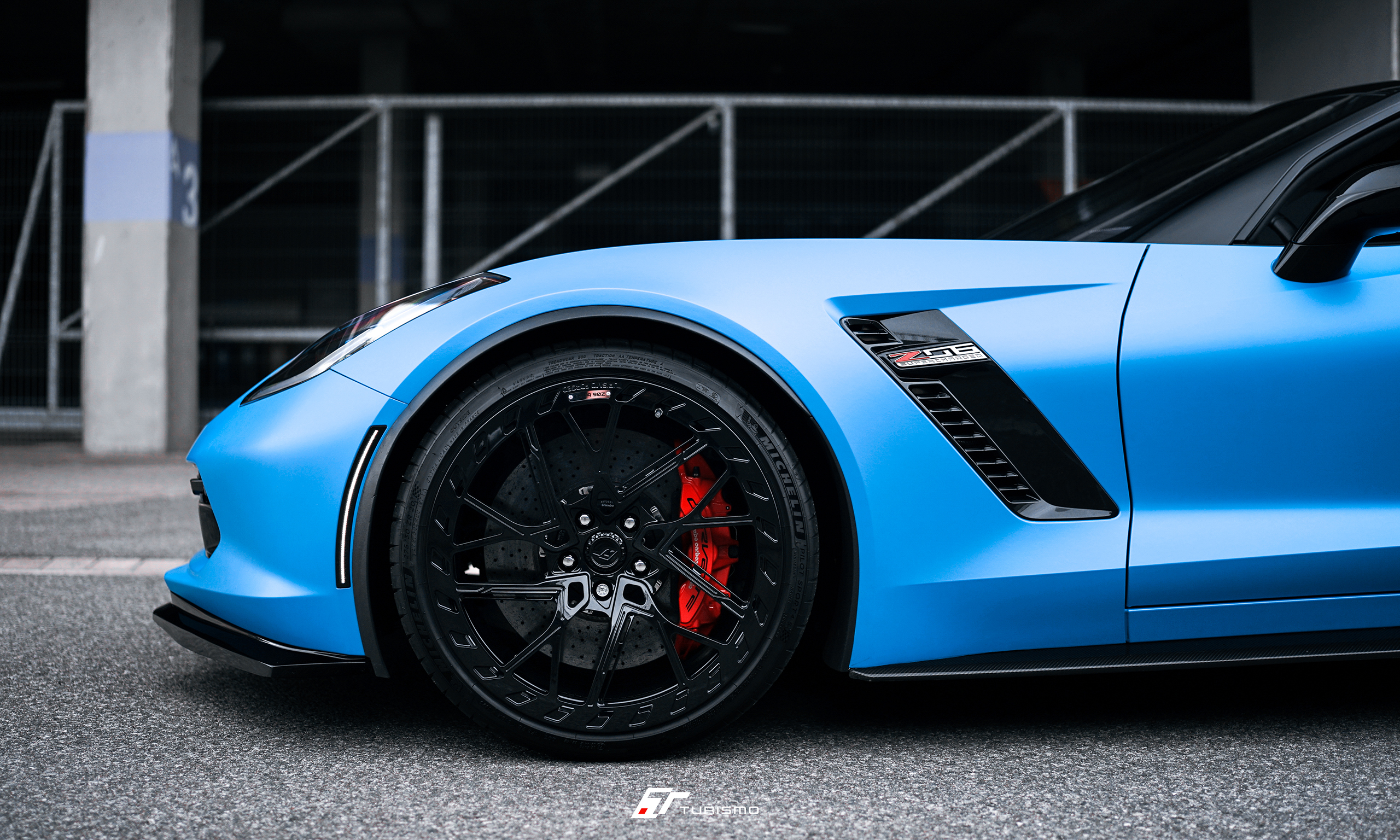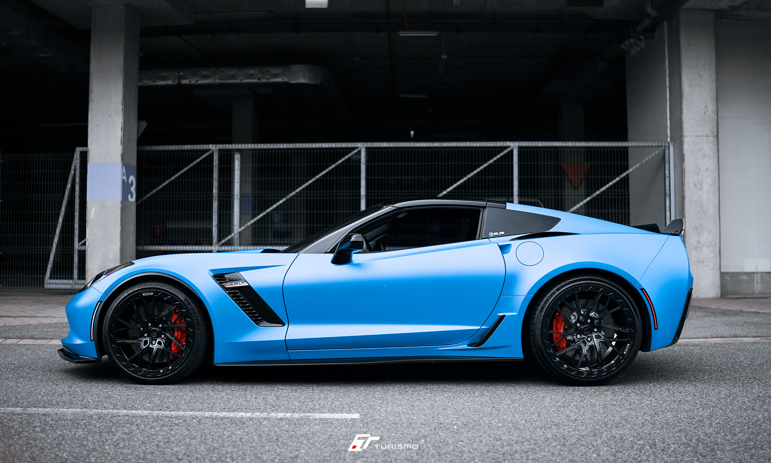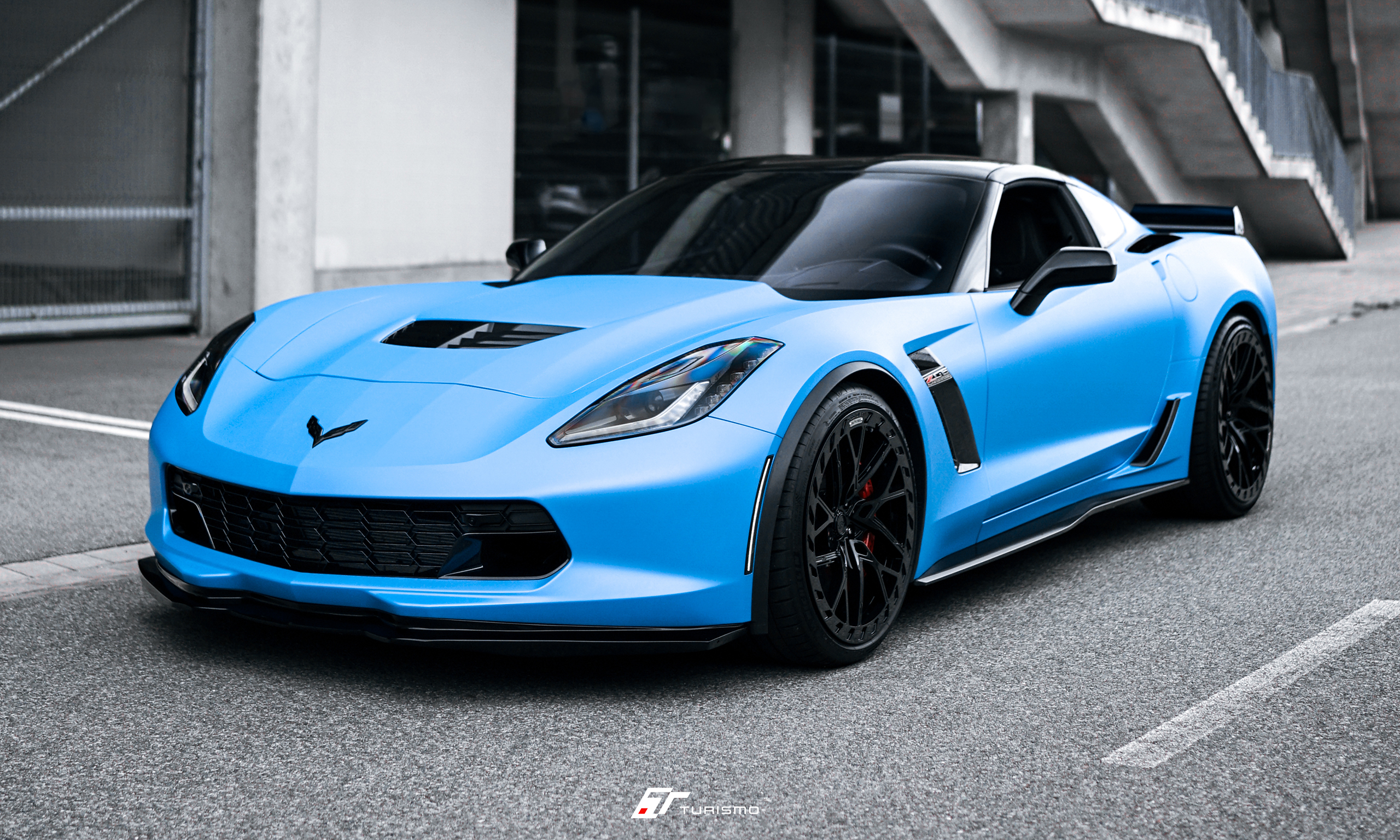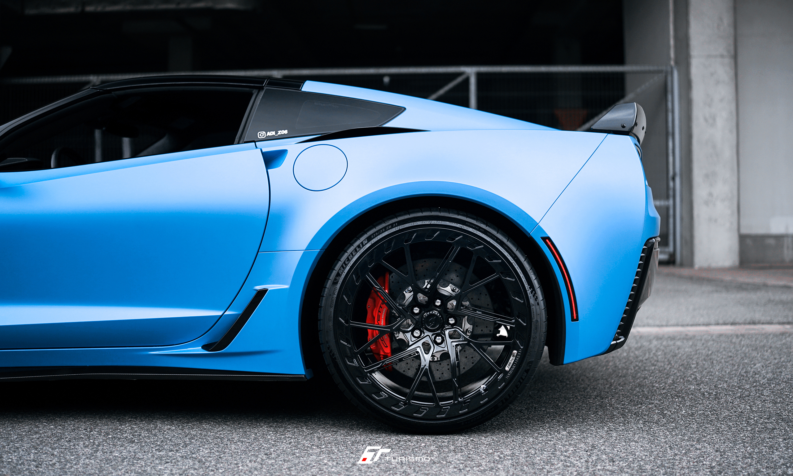 Chevrolet Corvette Z06 została wyposażona w zestaw kutych monoblokoów Turismo Forged DVX-R. Efektowne wzornictwo tej obręczy idealnie współgra z niecodzienną linią nadwozia Z06.