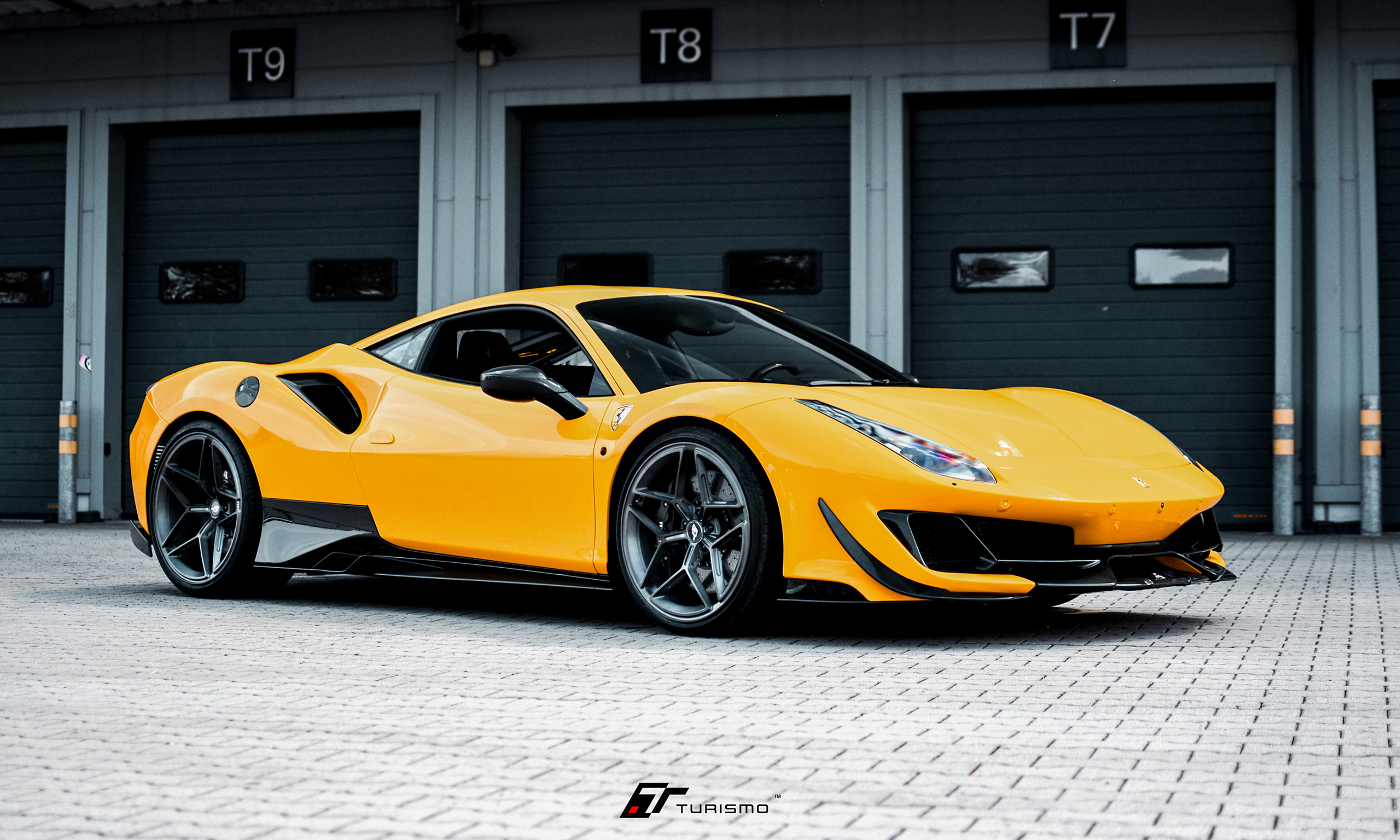 Ferrari 488 Pista zostało przez nas wyposażone w zestaw monobloków Turismo Forged C06 w kolorze Satin Brushed Deep Black. Klasyczna wzór felgi o zwartym i dynamicznym wzornictwie idealnie komponuje się z następcą 458 Italii.