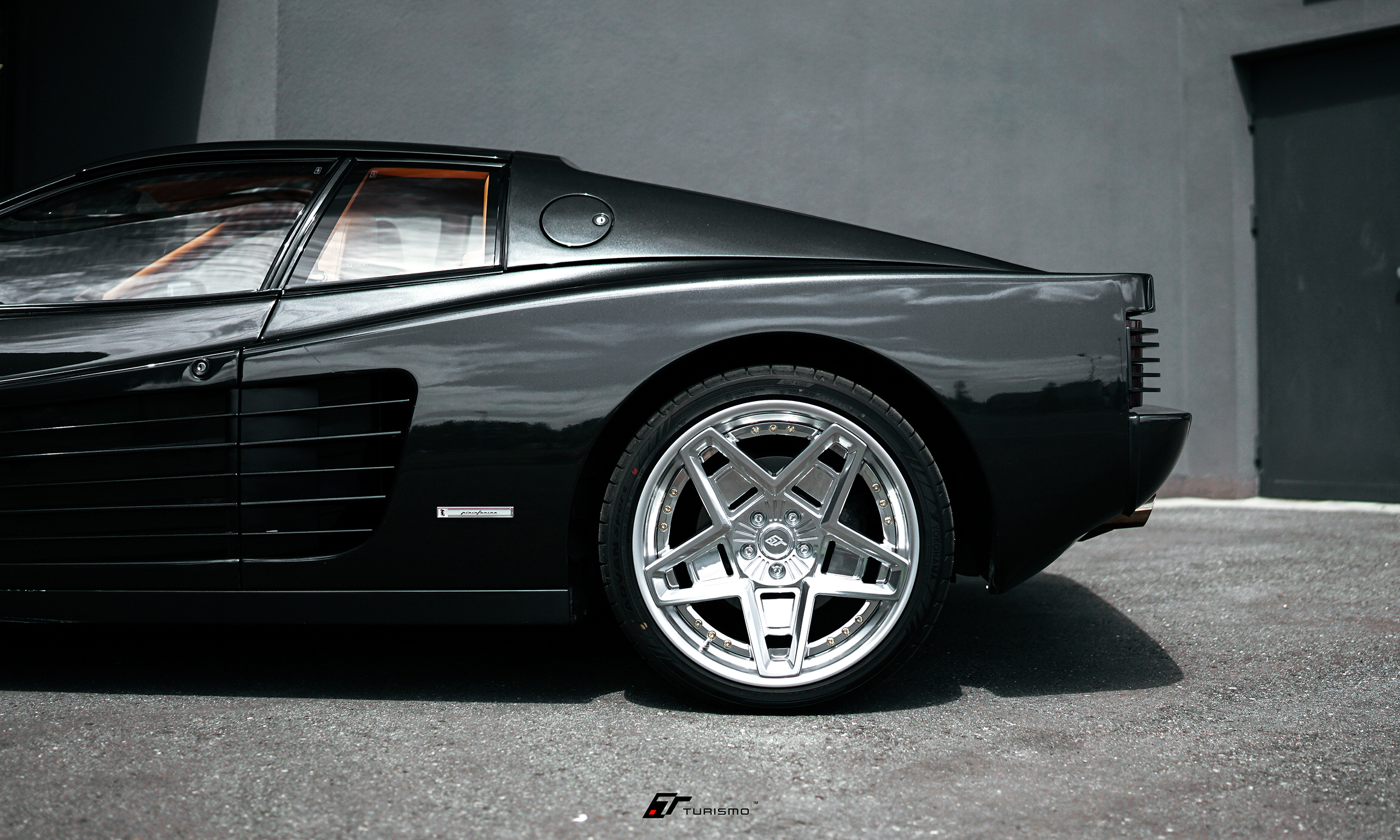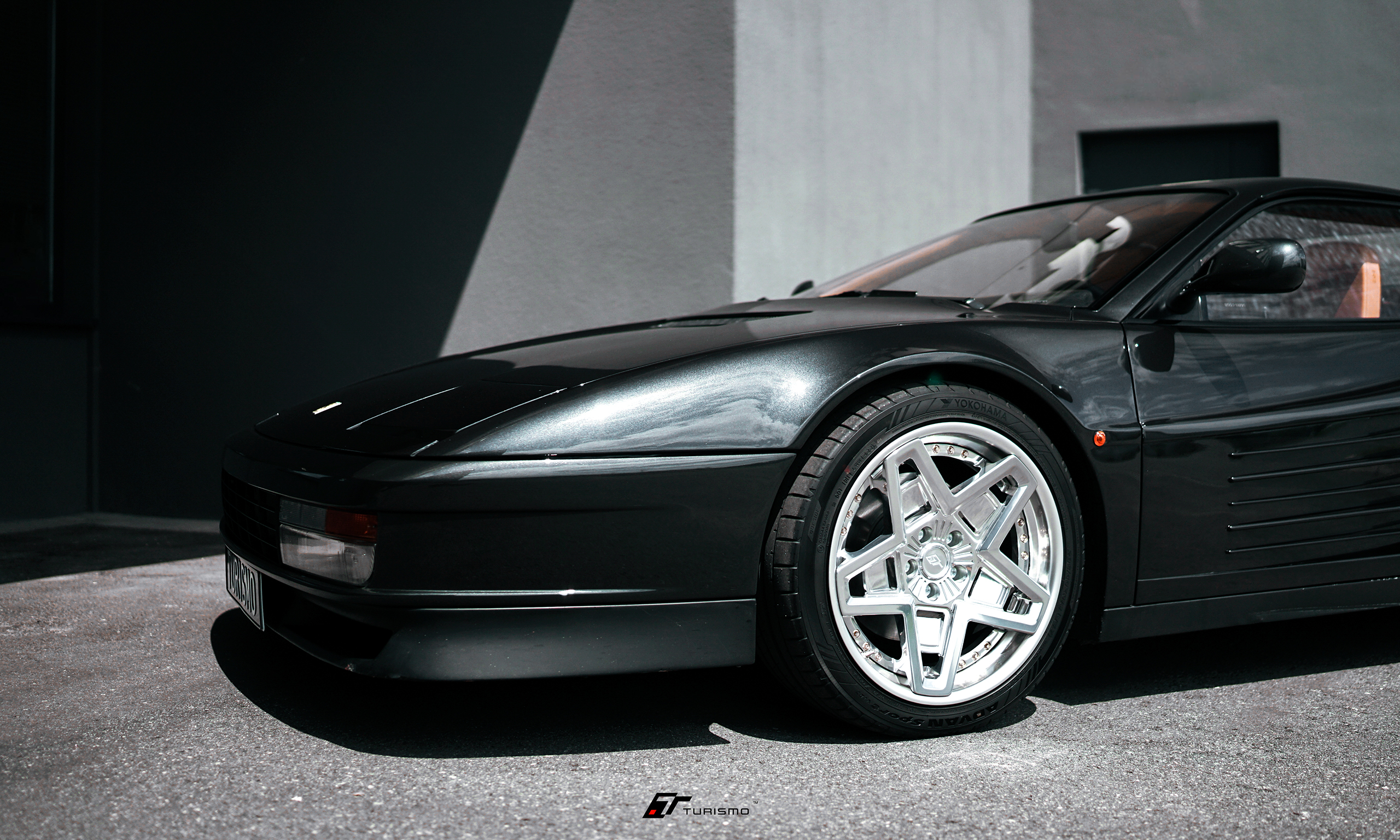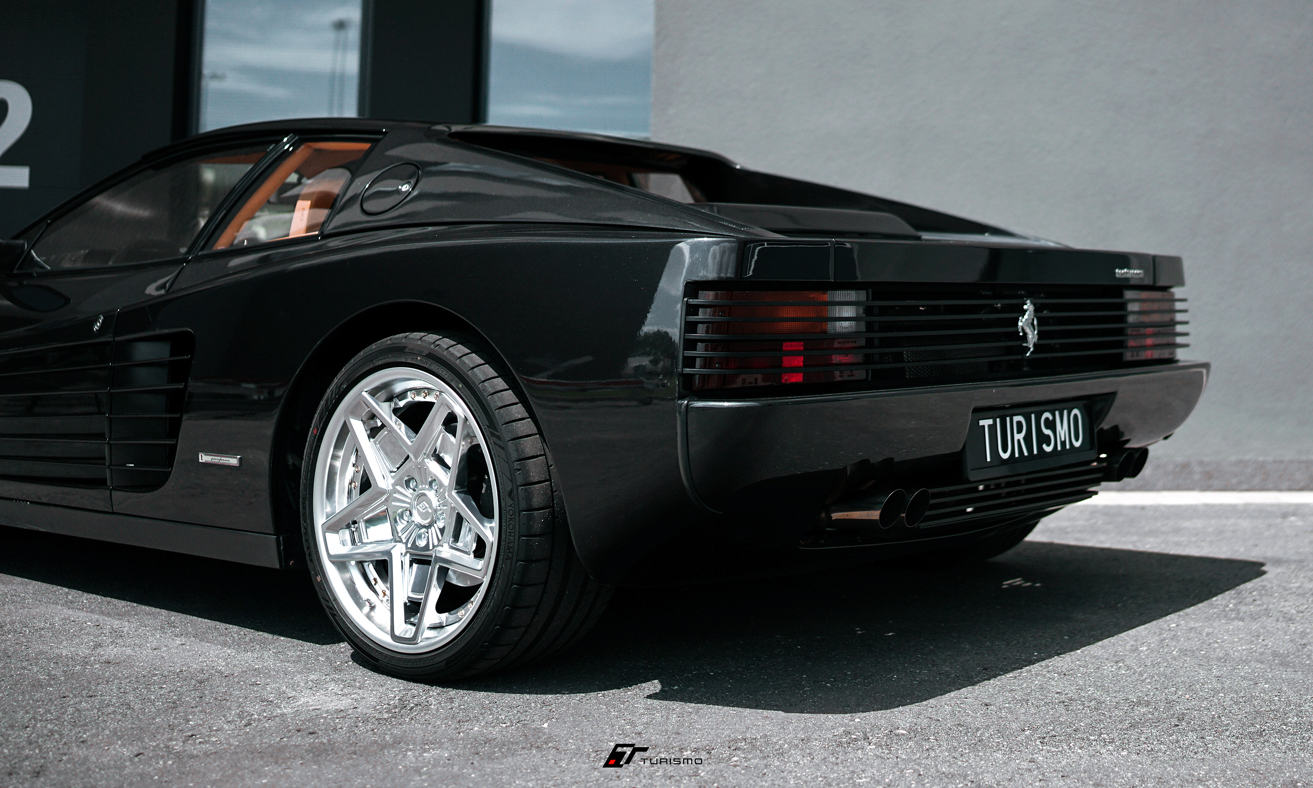 Ferrari Testarossa, czyli kolejna ikona z Maranello na customowych, skręcanych felgach Turismo Forged TST w łączonym wykończeniu polished/metallic silver. Jest to jedna z trzech sztuk, jeżdżąca na dokładnie tym samym wzorze felg.