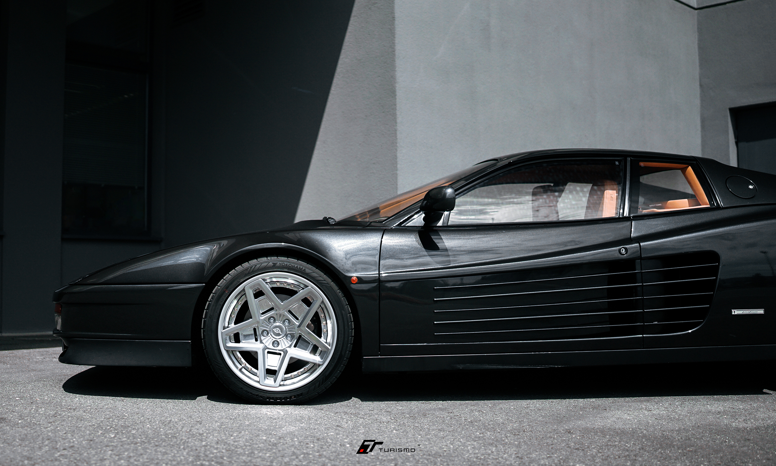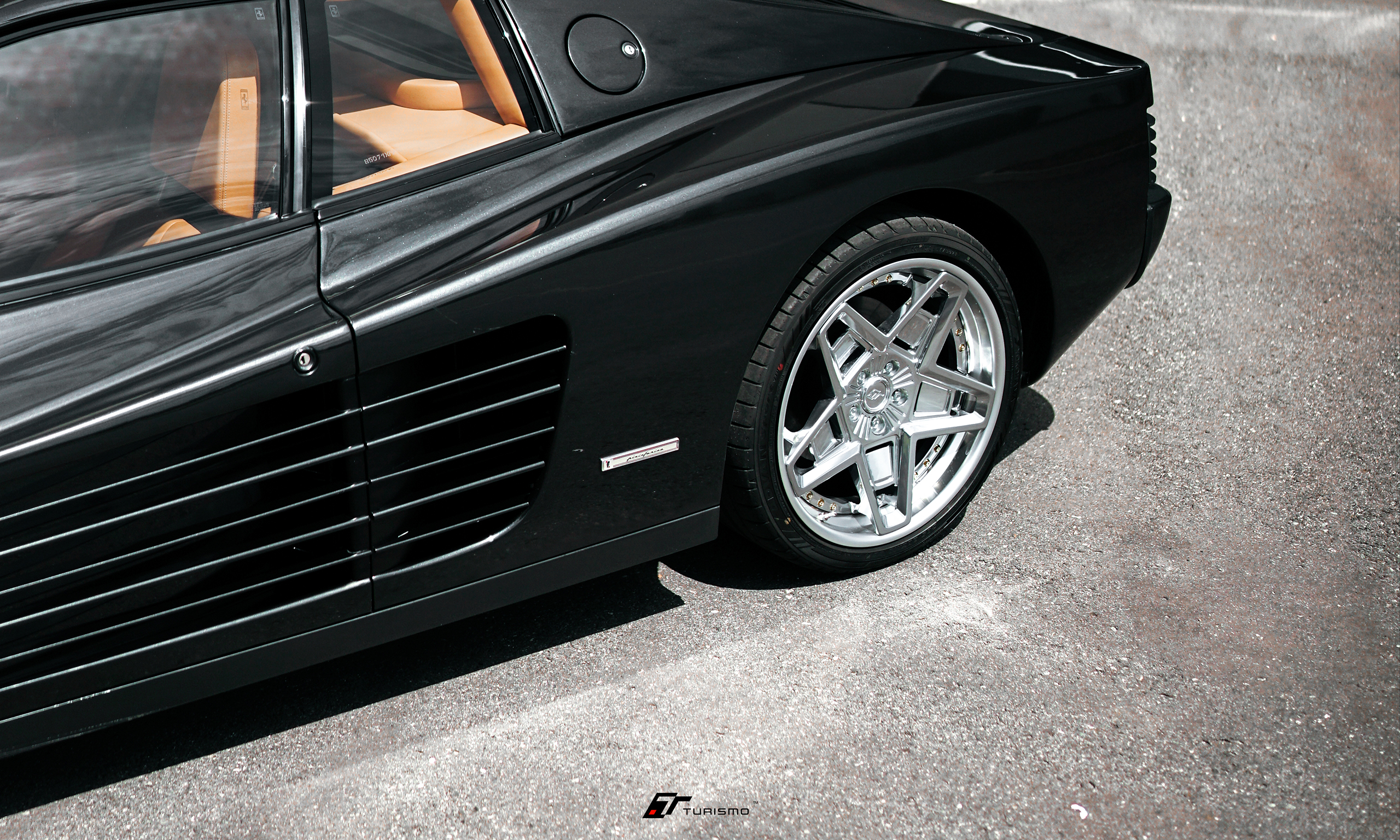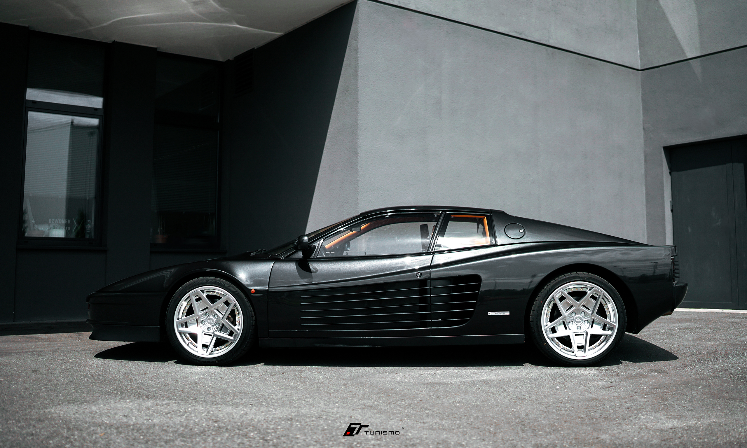 Ferrari Testarossa, czyli kolejna ikona z Maranello na customowych, skręcanych felgach Turismo Forged TST w łączonym wykończeniu polished/metallic silver. Jest to jedna z trzech sztuk, jeżdżąca na dokładnie tym samym wzorze felg.