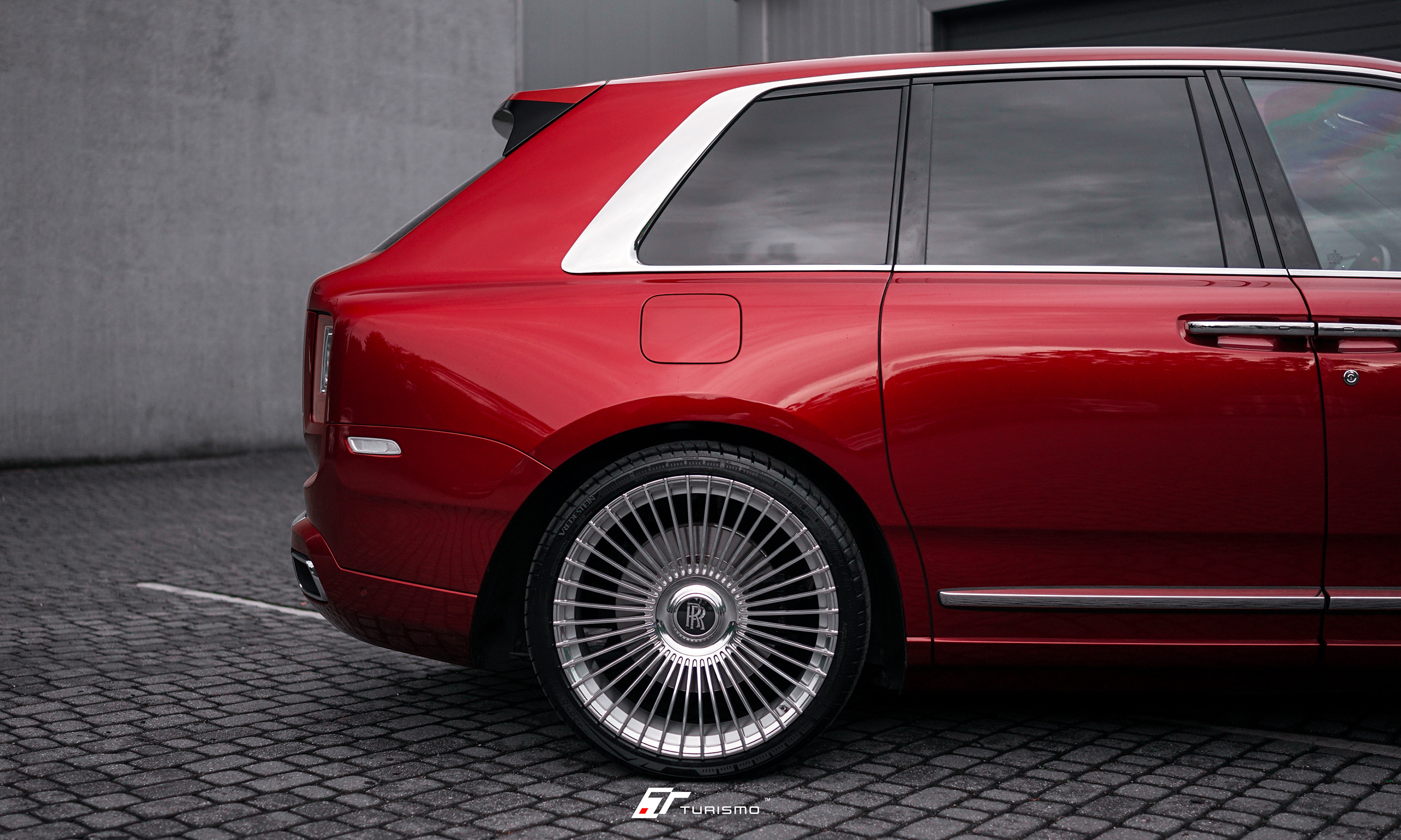 Rolls-Royce Cullinan to efekt współpracy z naszymi partnerami JFW felgi Kraków. został wyposażony w zestaw 24-calowych kutych felg aluminiowych Turismo RR z dekielkiem grawitacyjnym. Felgi Turismo RR, o klasycznym wzorze, są produkowane przy użyciu maszyn CNC z aluminium 6061. Charakteryzują się nowoczesnym i eleganckim wyglądem, a ich subtelne i ponadczasowe wzornictwo doskonale współgra z luksusowymi limuzynami.